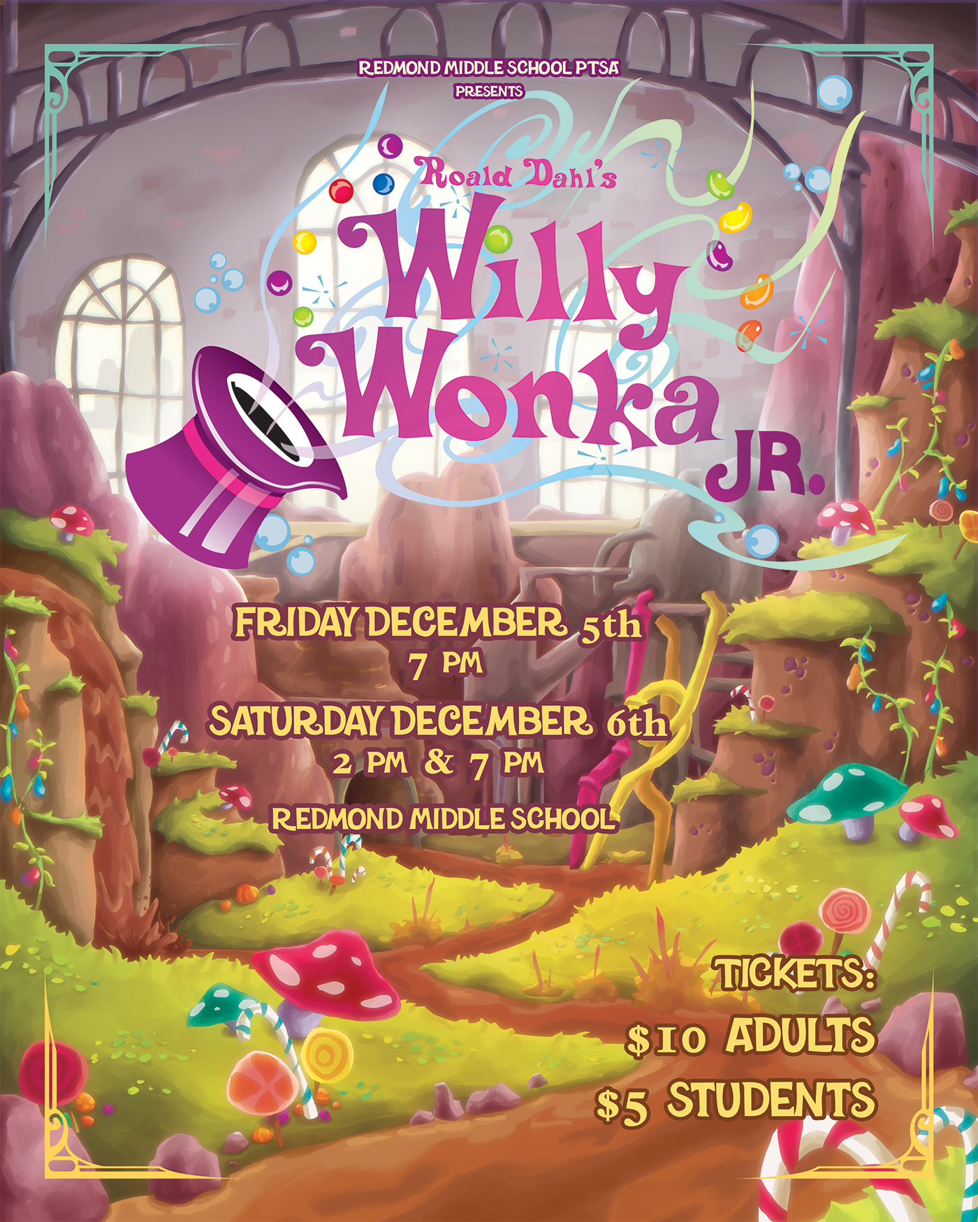 Willy Wonka Jr, performed by RMS students is almost here! Come out and support our budding thespians and tech students who have been rehearsing lines and working on sets and props for this play since September.